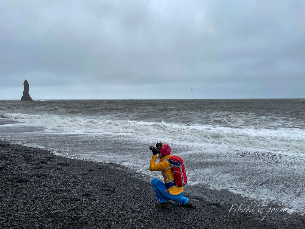 Po śniadanku, na które podano owsiankę z liofilizowanymi truskawkami i świeżym bananem, ruszyliśmy w kierunku Reynisfjara Beach, charakterystycznej czarnej plaży z jeszcze bardziej charakterystycznymi bazaltowymi klifami, czarnym wulkanicznym piaskiem oraz malowniczymi skałami Reynisdrangar, wystającymi z wody niczym grzbiet smoka. Bazaltowe kolumny są zjawiskiem rzadkim, a ich powstanie związane jest z szybko zastygającą i równie szybko pękającą lawą. Ta aspirująca do miana najpiękniejszej plaży świata, doczekała się ekranizacji, będąc inscenizacją dla wschodniej strażnicy na Murze w „Grze o Tron”. Plaża, jak piękna, jest również niebezpieczna. Występują tu częste fale typu „sneaker wave”, które pojawiają się znikąd i zabierają ze sobą wszystko. Z przypływami i dopływami też lepiej uważać. My dziś doświadczyliśmy tego, jak w zaledwie kilkanaście, może kilkadziesiąt minut, fale powoli zwiększały swój zasięg, a gdybyśmy zabawili tam dłużej, pewnie odcięłyby nam normalną drogę wyjścia.